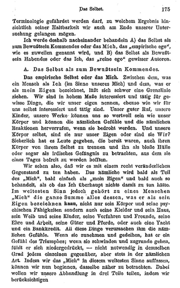James, William (1909, 1. A. 1892). Das Selbst. Das Mich und das Ich.