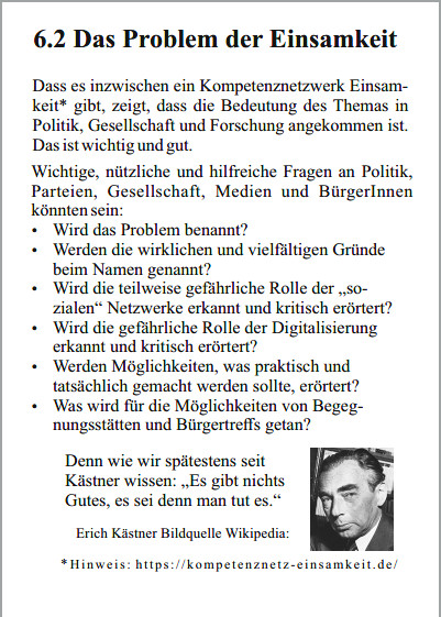 Einsamkeit, neu entdecktes Thema der Politik und grundlegend