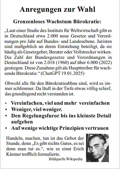 die aus unserer Sicht bei der Wahl 2025 berücksichtigt werden sollten