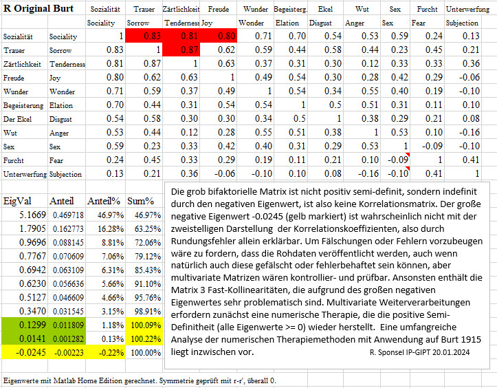 der indefiniten "Korrelationsmatrix" von Burt 1915